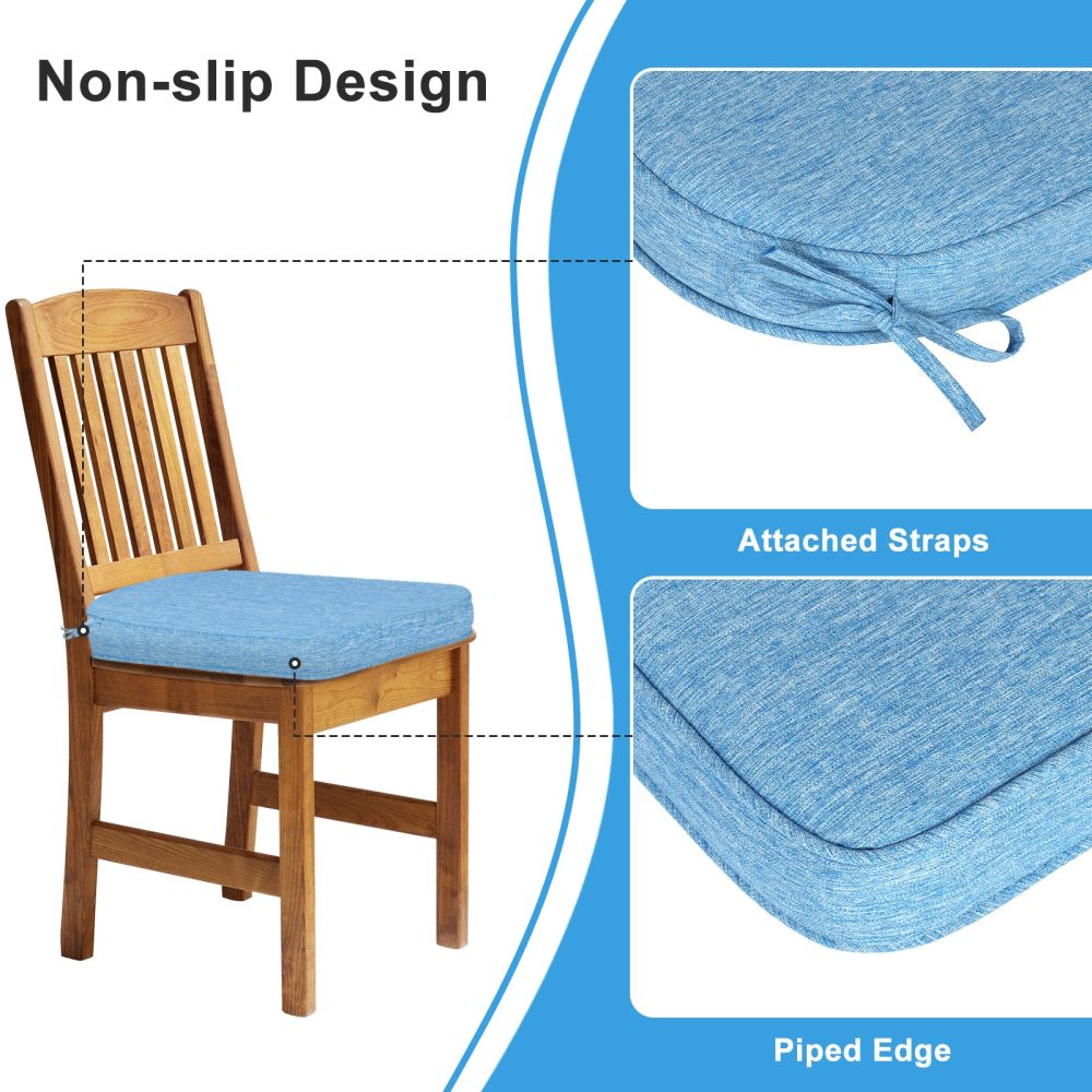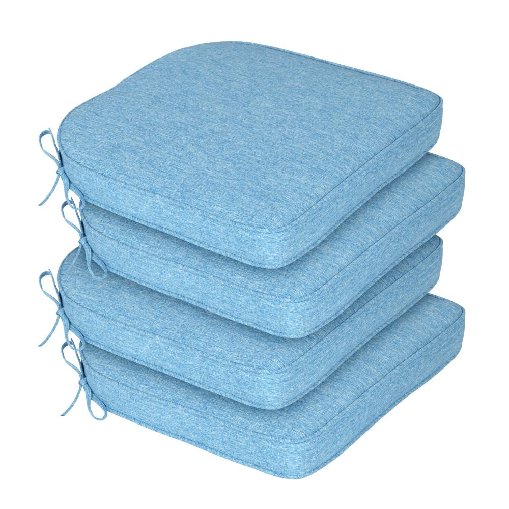 Outdoor Dining Chair Cushions Set, Patio Chair Pads with Ties, Lake Blue